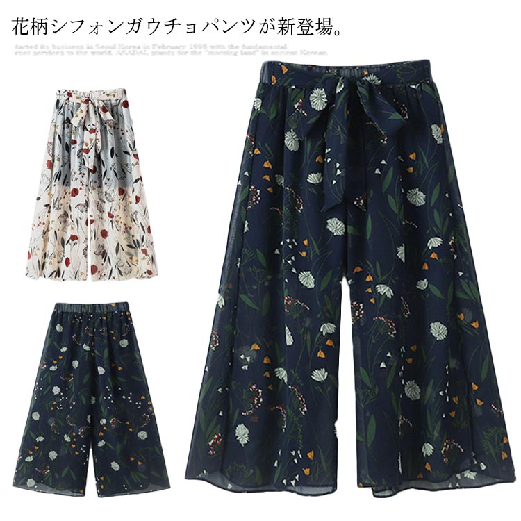 ガウチョパンツ 子供服 シフォンパンツ シフォンガウチョ スカンツ スカーチョ ガウチョ シフォン フレアパンツ スリット入り 花柄 ウエスト紐 ふんわり 薄手 裏地付き お洒落 キレイめ ボトムス 夏物 夏新作